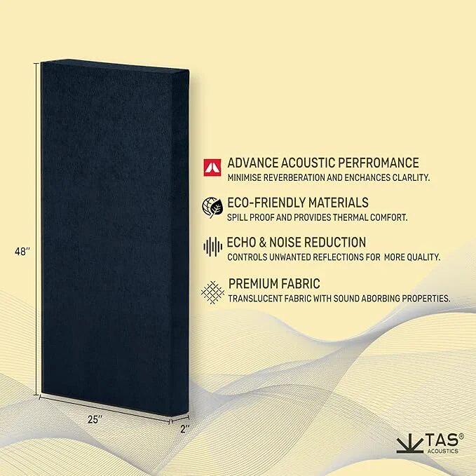 The need for soundproofing and acoustical treatment for commercial or residential spaces is the most essential part of audio production and audio engineering. TAS ACOUSTICS provides a comprehensive range of products for acoustical treatment solutions. There is no need to cover the entirety of the area for maximum absorption.