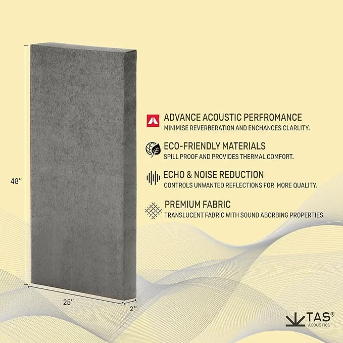 The need for soundproofing and acoustical treatment for commercial or residential spaces is the most essential part of audio production and audio engineering. TAS ACOUSTICS provides a comprehensive range of products for acoustical treatment solutions. There is no need to cover the entirety of the area for maximum absorption.